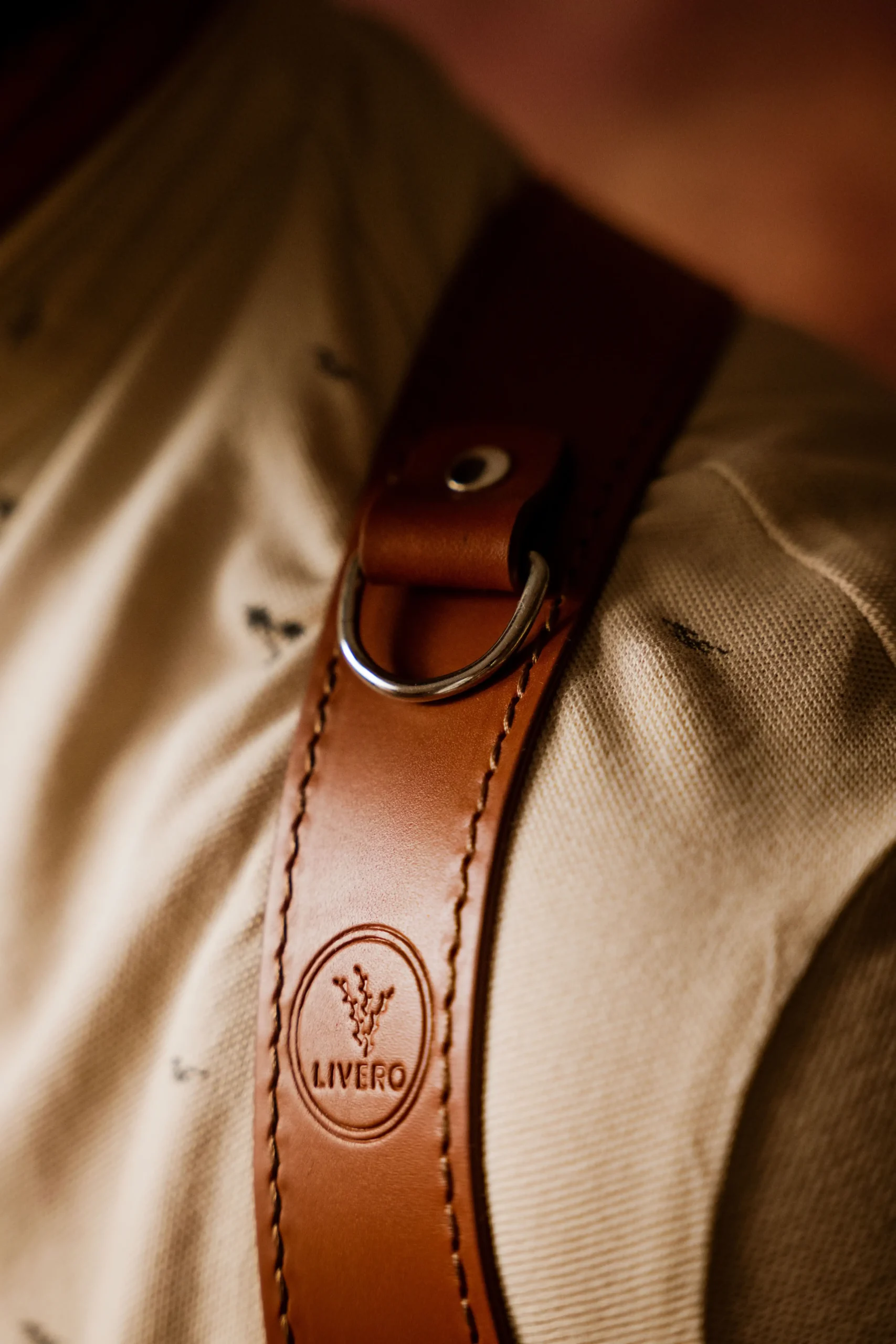 Il prodotto viene realizzato interamente a mano compresi i dettagli delle cuciture e bordi laterali che rendono la tracolla elegan- te e resistente all’usura.